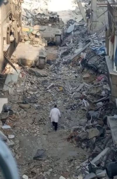 After murdering and arresting his medical staff the IDF forced the director of the Kamal Adwan hospital to walk through these ruins and surrender. There are two tanks at the top of the photo. What incredible bravery. The IDF confirms they have him but won't say where.